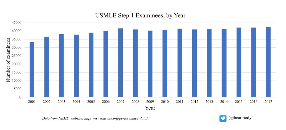 The total number of test-takers for the USMLE Step 1 has been essentially unchanged for the past 10-15 years.
