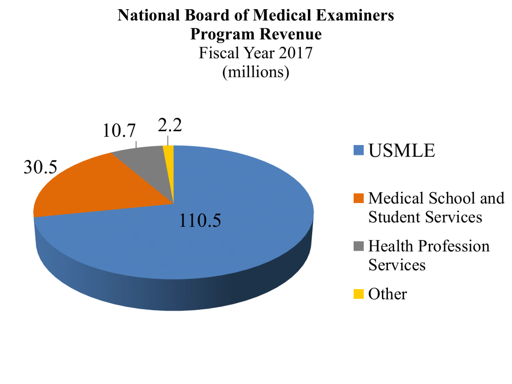 Clearly, the USMLE program is the primary revenue generator for the NBME, accounting for 72% of total revenue in 2017.