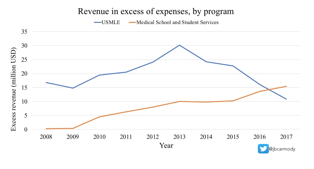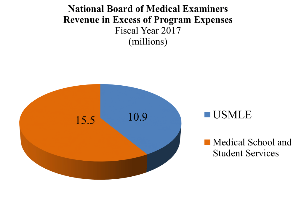 In other words, in fiscal year 2017, the Medical School and Student Services program was responsible for 59% of the excess revenue (profit) received by the NBME.