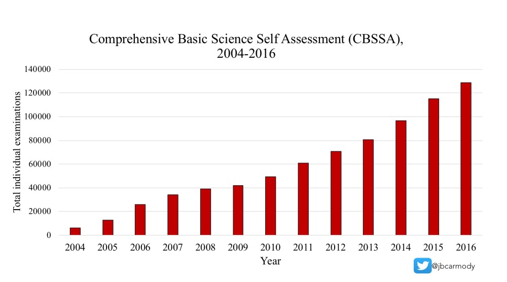 You can purchase as many CBSSA exams as you like. They cost $60 apiece – so with sales of 128,934 in 2016, the NBME cleared over $7.7 million.