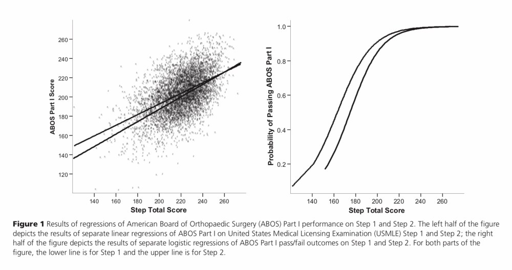 (By the way, this article was not written by orthopedic surgeons – it written by analysts from the National Board of Medical Examiners, which explains the data interpretation and conclusion expressed in the abstract. However, if you need a metric to predict scores on the orthopedics in-training exam, there was this study – which found an association between the SAT and in-training scores.)
