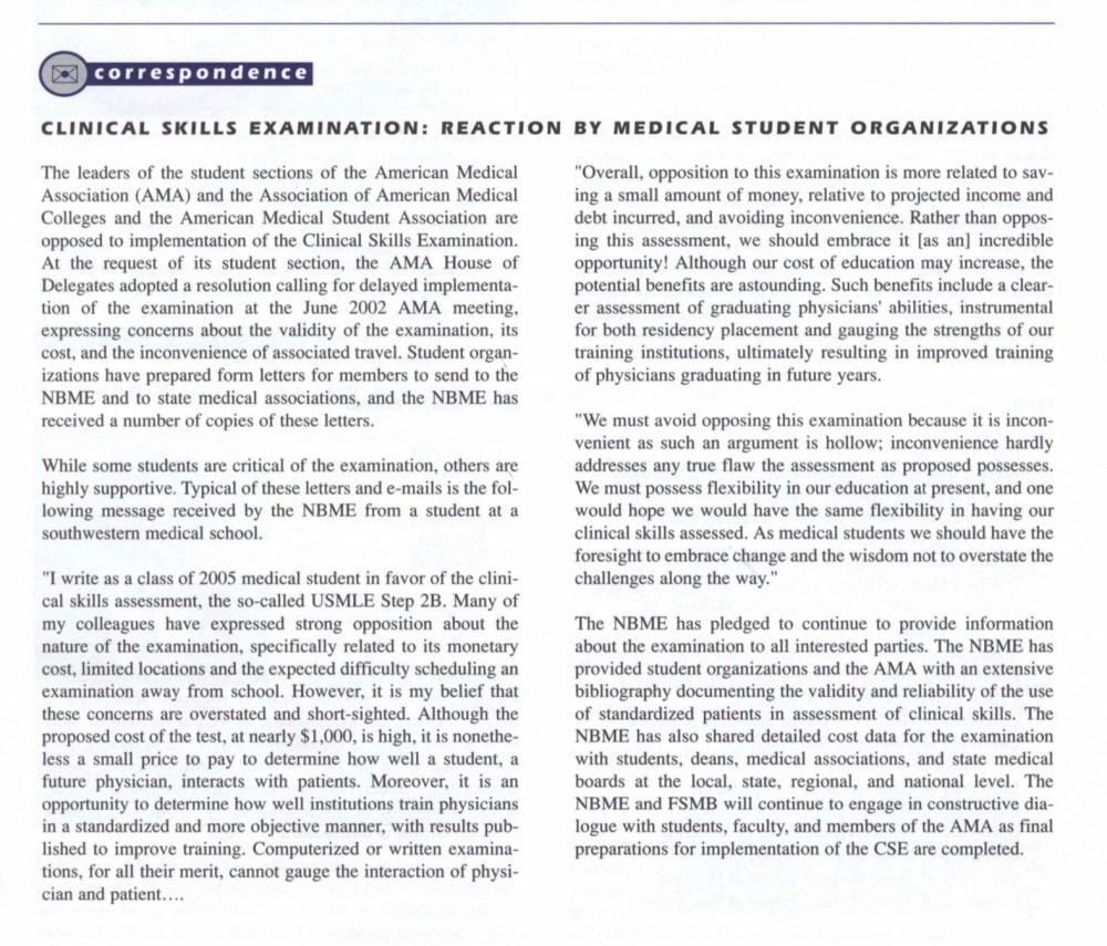 Note that no one was arguing that clinical skills weren’t useful, or that patient communication was unimportant. At issue was not whether a clinical skills evaluation was a good thing to have – it was who should be responsible for providing that evaluation, and how those skills should be assessed. In the opinion of the students and the AMA, the teaching and evaluation of clinical skills could be rigorously performed by accredited U.S. medical schools.