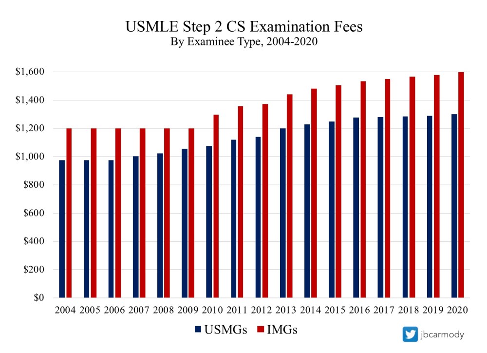 The cost of USMLE Step 2 CS is substantial and keeps rising… though fees have increased less less during and immediately after periods of more intense student opposition to the exam.