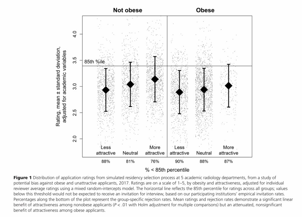 Already, these applicants enjoy an advantage: being facially attractive is equivalent to around a 10-point increase on USMLE Step 1, while being non-obese is similar to having 2 additional research publications. These effects will only be magnified if all PDs have to go on is somebody’s head on a screen.