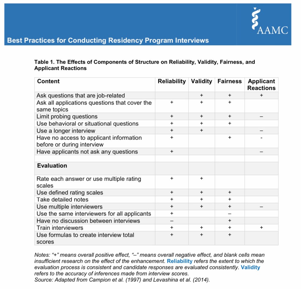From the AAMC’s Best Practices for Conducting Residency Program Interviews.