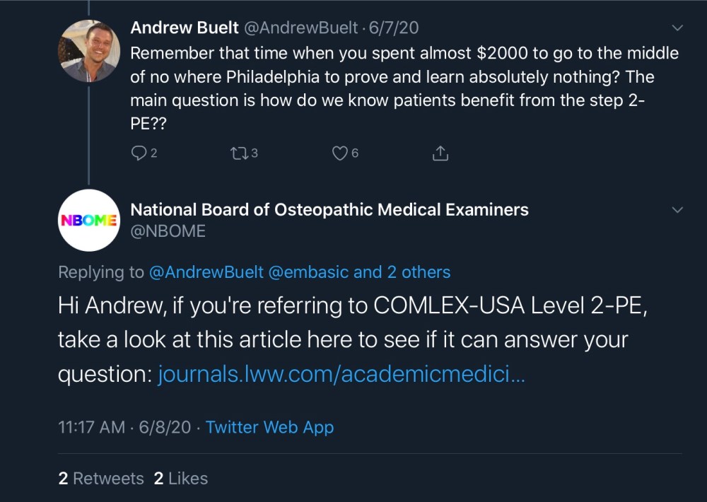 In fact, the NBOME’s Twitter account has been downright sassy in touting the value of COMLEX based on this study.