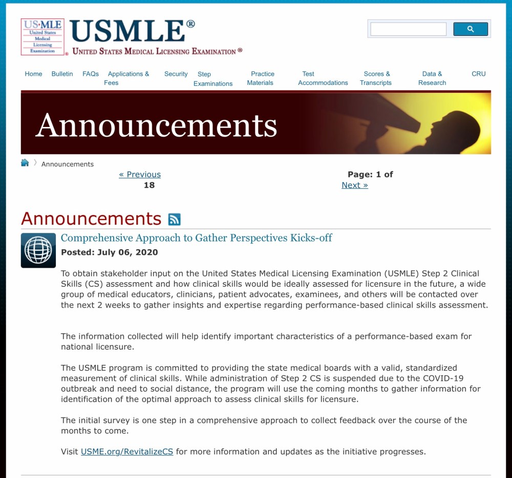 But if you’re asking the NBME to voluntarily stop offering Step 2 CS, just be aware that your sincere and valid concerns about the exam – no matter how loudly or clearly they are articulated – will likely result in nothing more than some serious-faced head-nodding and beard stroking in a future town hall meeting with USMLE executives. Meanwhile, the plans to re-start Step 2 CS will march on.