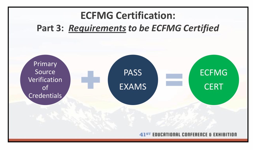 The ECFMG often likens its role to that performed by the dean’s office at a U.S. medical school. It’s an apt analogy. The ECFMG’s primary purpose is to verify credentials and vouch for the professional readiness of IMGs to enter residency training. In fact, any IMG who wants to train at an accredited residency program in the U.S., must be ECFMG certified.