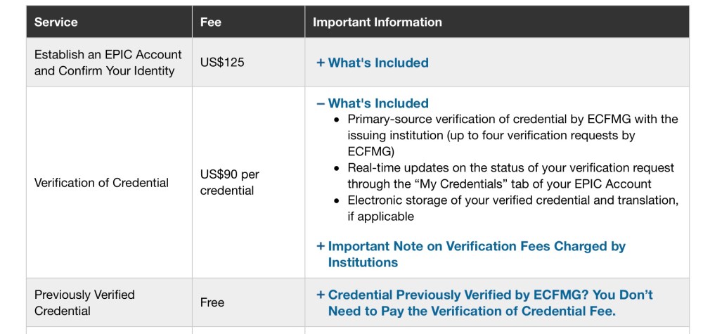 From the screenshot above, note also that previously-verified credentials were free. This is a relevant because IMGs already had their basic credentials – such as their current enrollment in a bona fide medical school – verified as a requirement to register for the USMLE Step 1 and Step 2 CK exams.