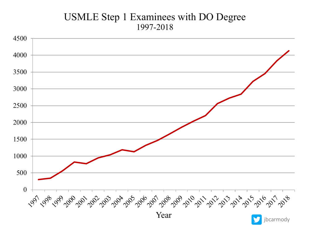 On the other hand, completing the USMLE series would require DO students to take USMLE Step 2 CS – a $1600 pass/fail exam that residency program directors don’t care about and that one in twenty students fails – as well as USMLE Step 3. Why choose the riskier and more expensive path?