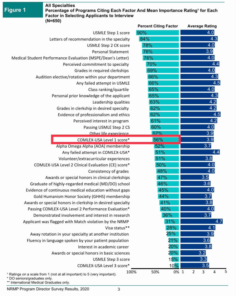It’s derived from Figure 4, which shows that only 45% of programs use specific COMLEX Level 1 scores to screen applicants, while another 41% require applicants to pass COMLEX Level 1 in order to be considered for an interview.