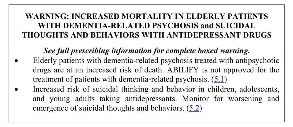 The Abilify black box warning, from the package insert.