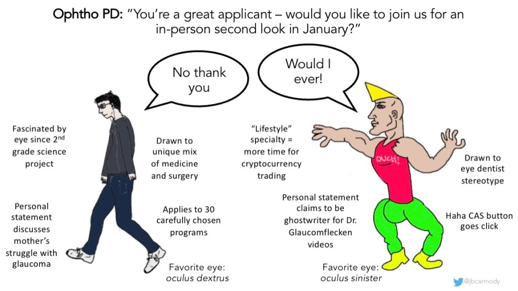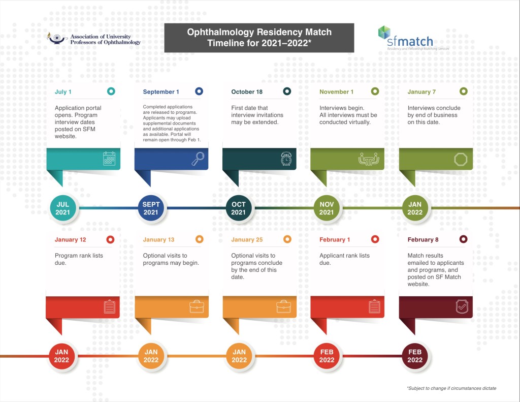 Did you hear that ophthalmology is going to allow their applicants to take in person “second look” visits this year? Applicants can visit programs after the programs have submitted their rank lists, but before applicants have to submit theirs – so there’s no pressure on applicants to attend unless they’re really interested! Why can’t the NRMP move their calendar to allow this for other specialties, too?