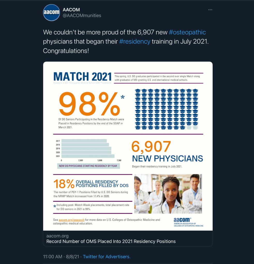 For those who missed it, the issue is that AACOM’s numbers don’t line up with those in the NRMP’s 2021 Match report.