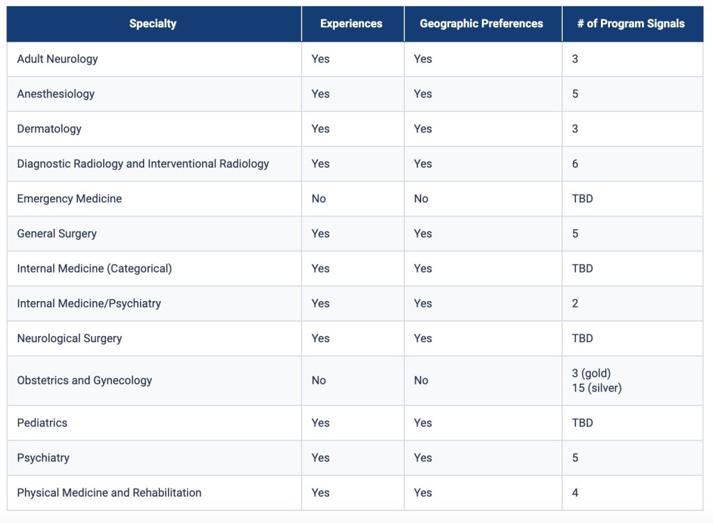 This is an important trend. The proliferation of preference signaling will lead to some unintended consequences that I’ll review in a future post. Moreover, the use of a tiered signaling system in OB-GYN is especially noteworthy and deserving of further analysis – so check back soon (or just subscribe already).