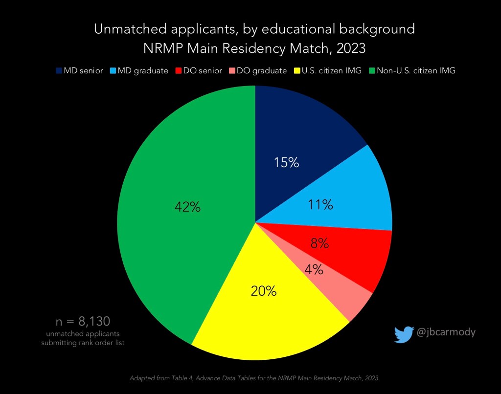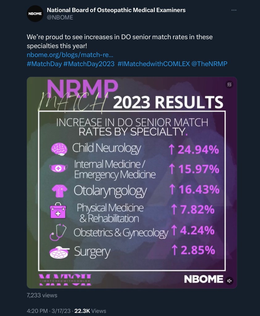 Other variations of misinterpretation are even more bizarre. On Twitter, the National Board of Osteopathic Medical Examiners celebrated improvements in DO senior match rates… and I truly have no clue how they calculated their figures. (Naturally, though, they declined to provide any explanation.)